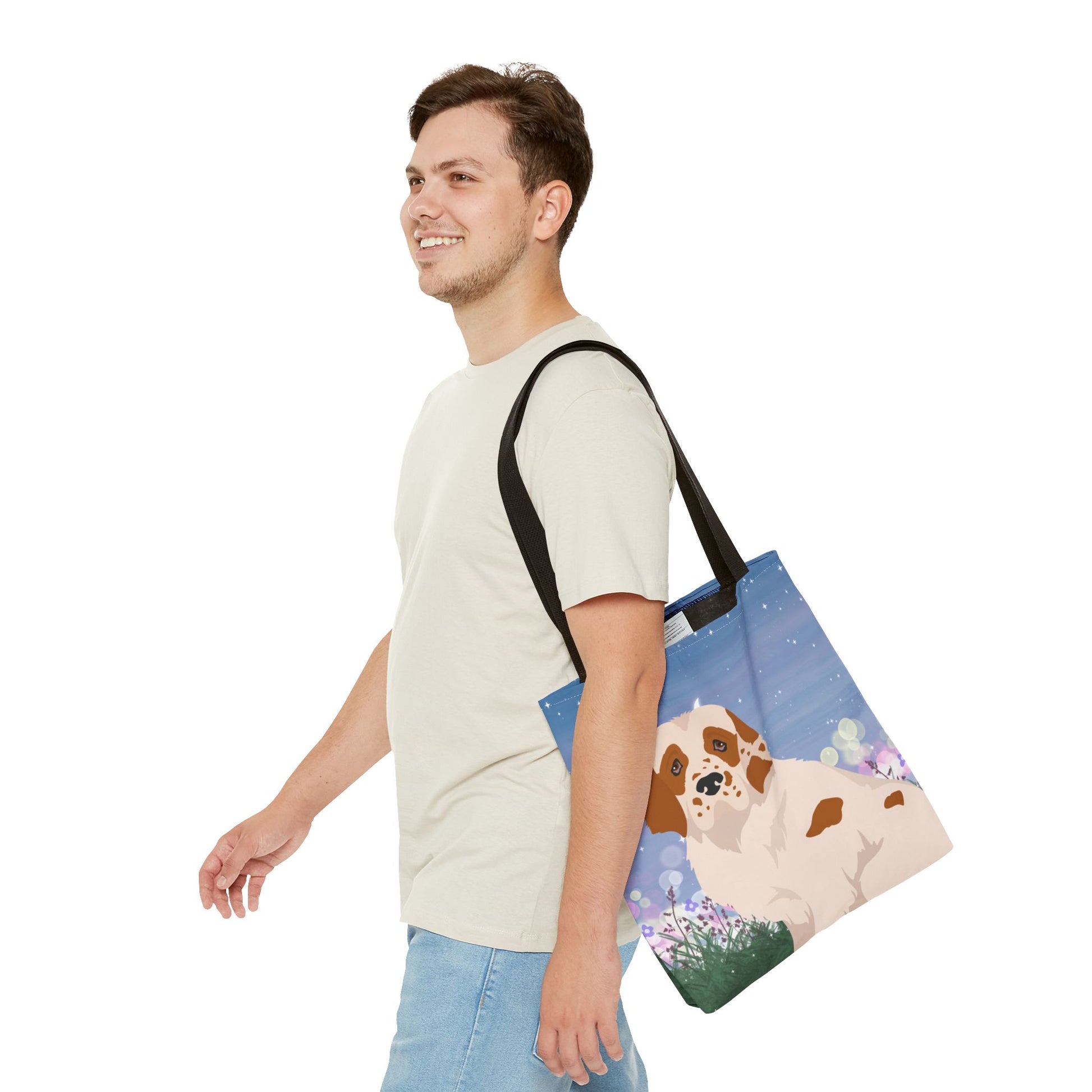 The durable polyester body and reinforced stitching make it ideal for everyday use. The boxed corners provide extra room for storage these tote bags are versatile and functional. Great for outings, shopping trips, or as a gift for Dog lovers.