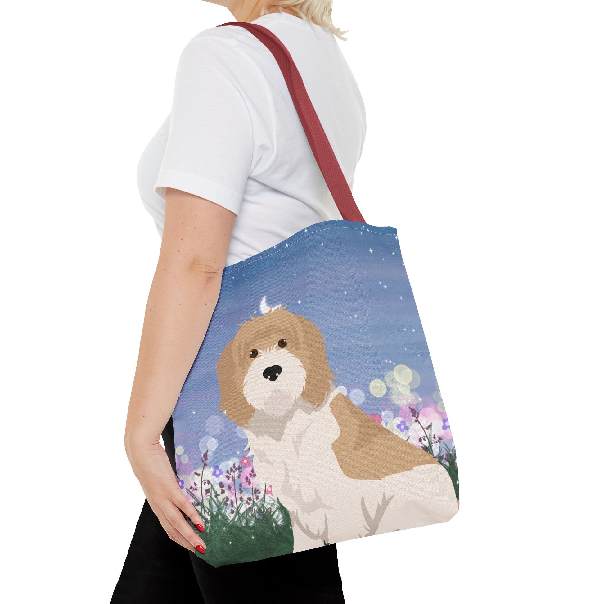 The durable polyester body and reinforced stitching make it ideal for everyday use. The boxed corners provide extra room for storage these tote bags are versatile and functional. Great for outings, shopping trips, or as a gift for Dog lovers.