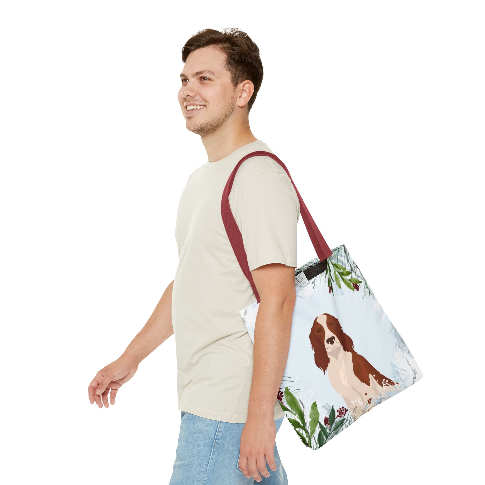 Irish Red and White Setter Dog Christmas Holiday Tote Bag 16x16