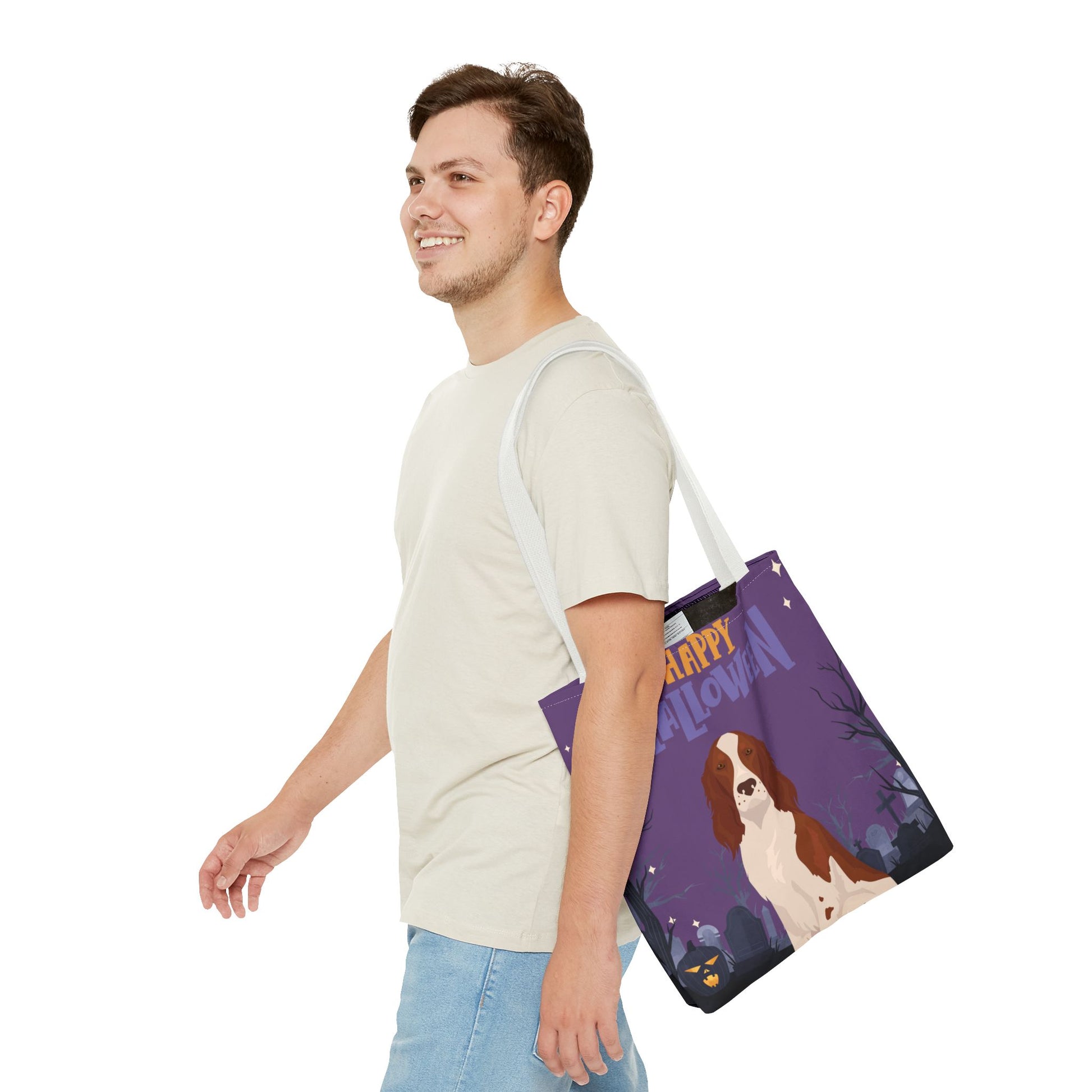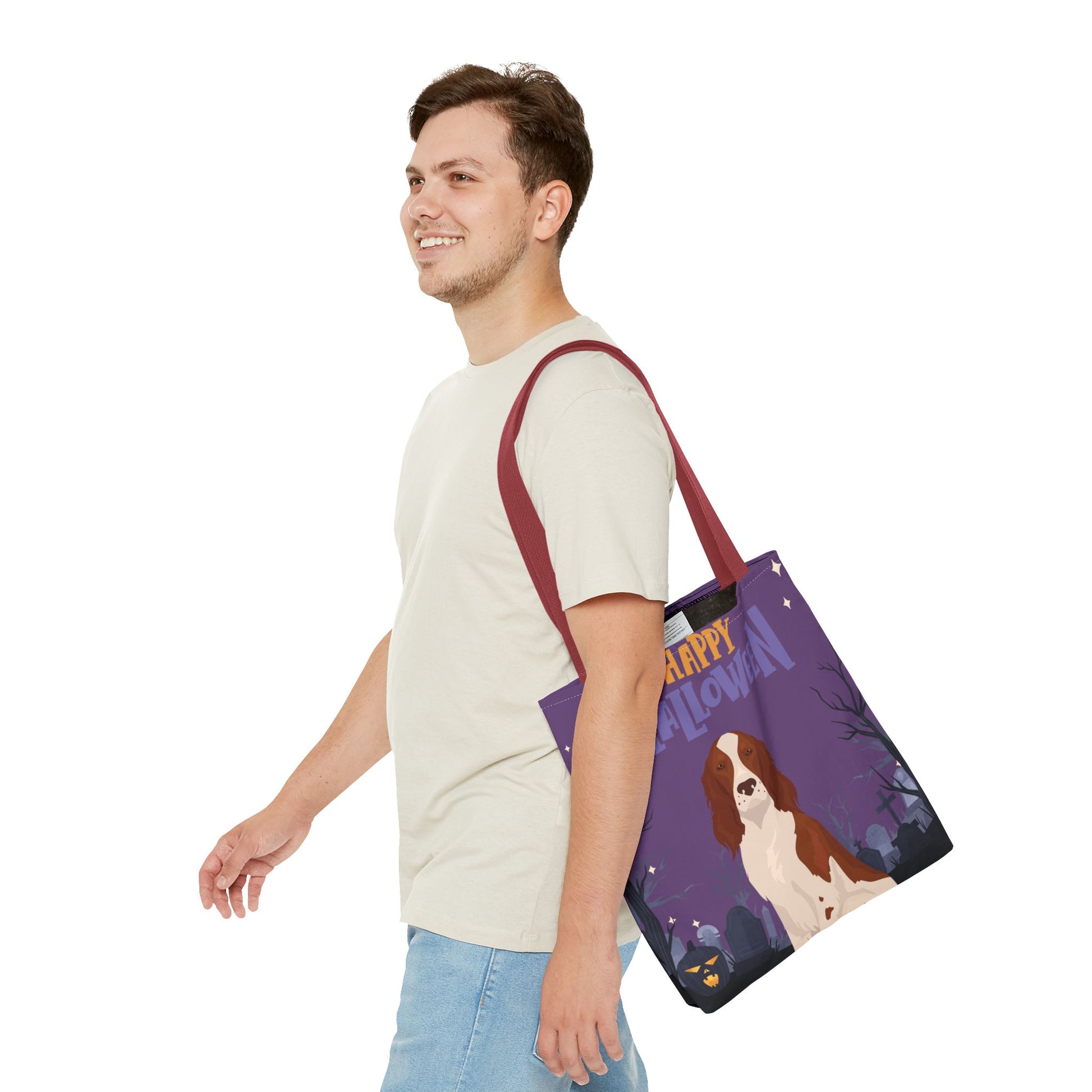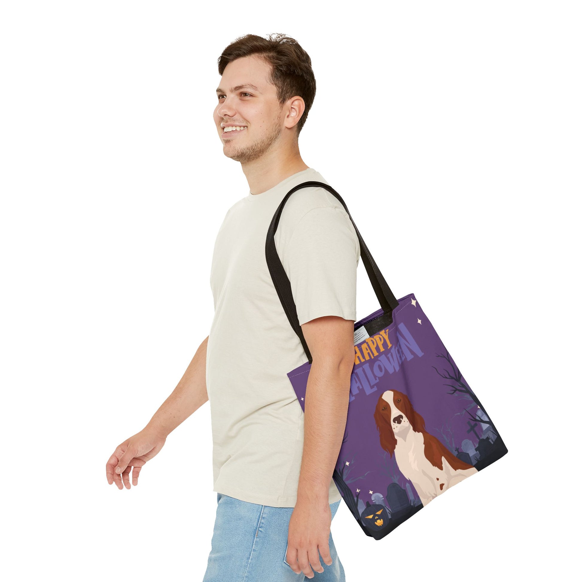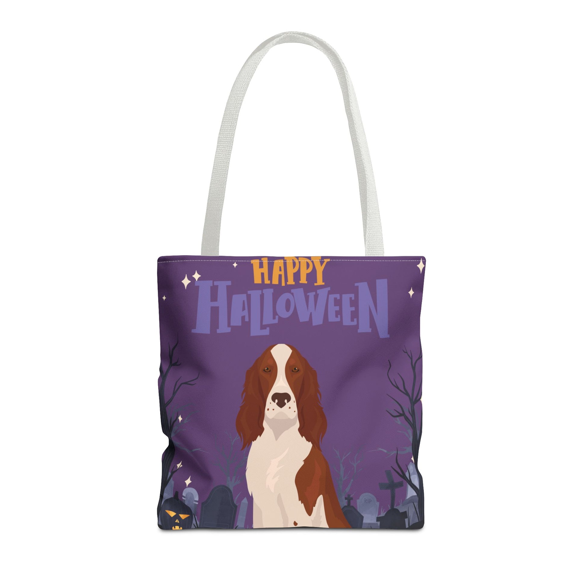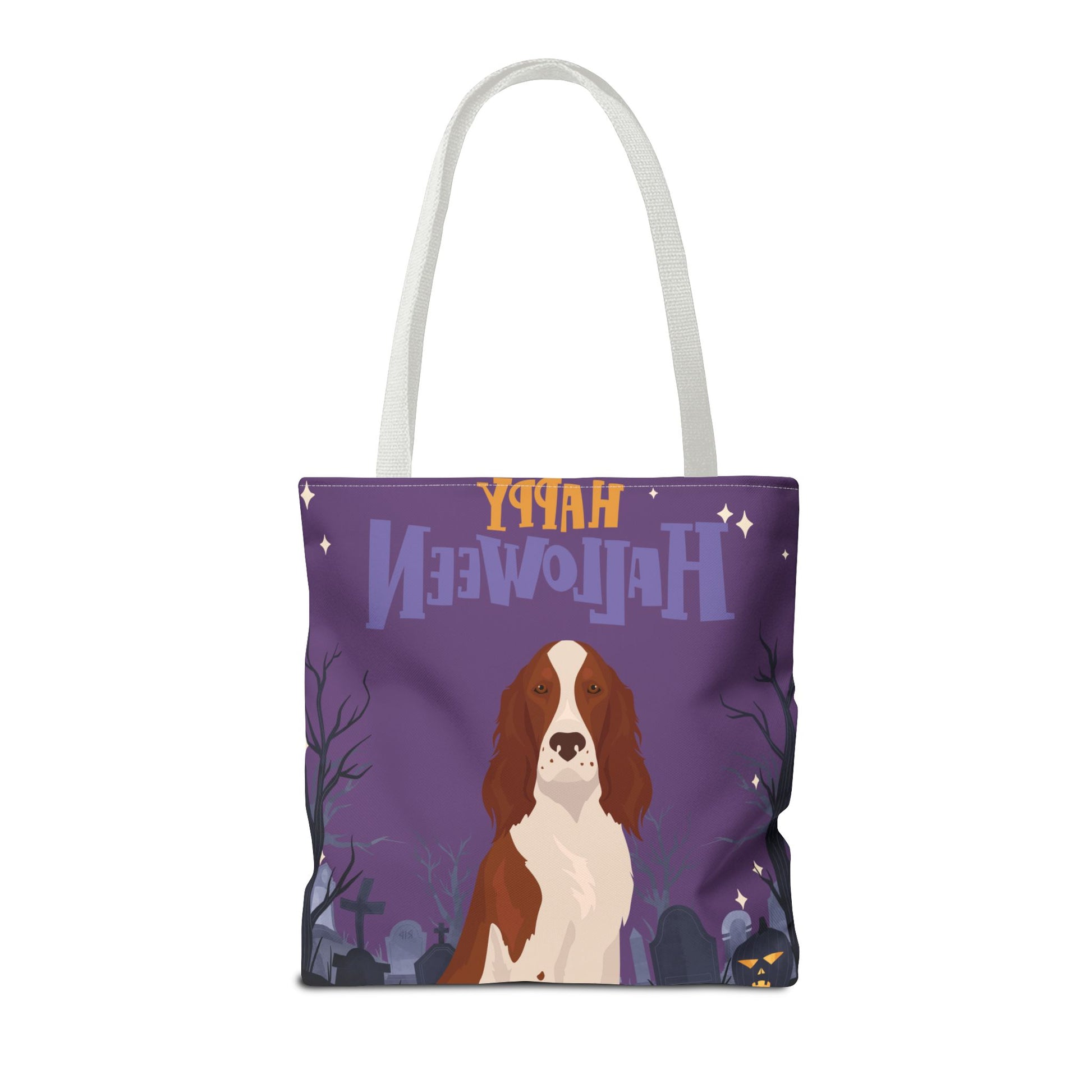 Irish Red and White Setter Dog Happy Halloween Tote Bag 16x16