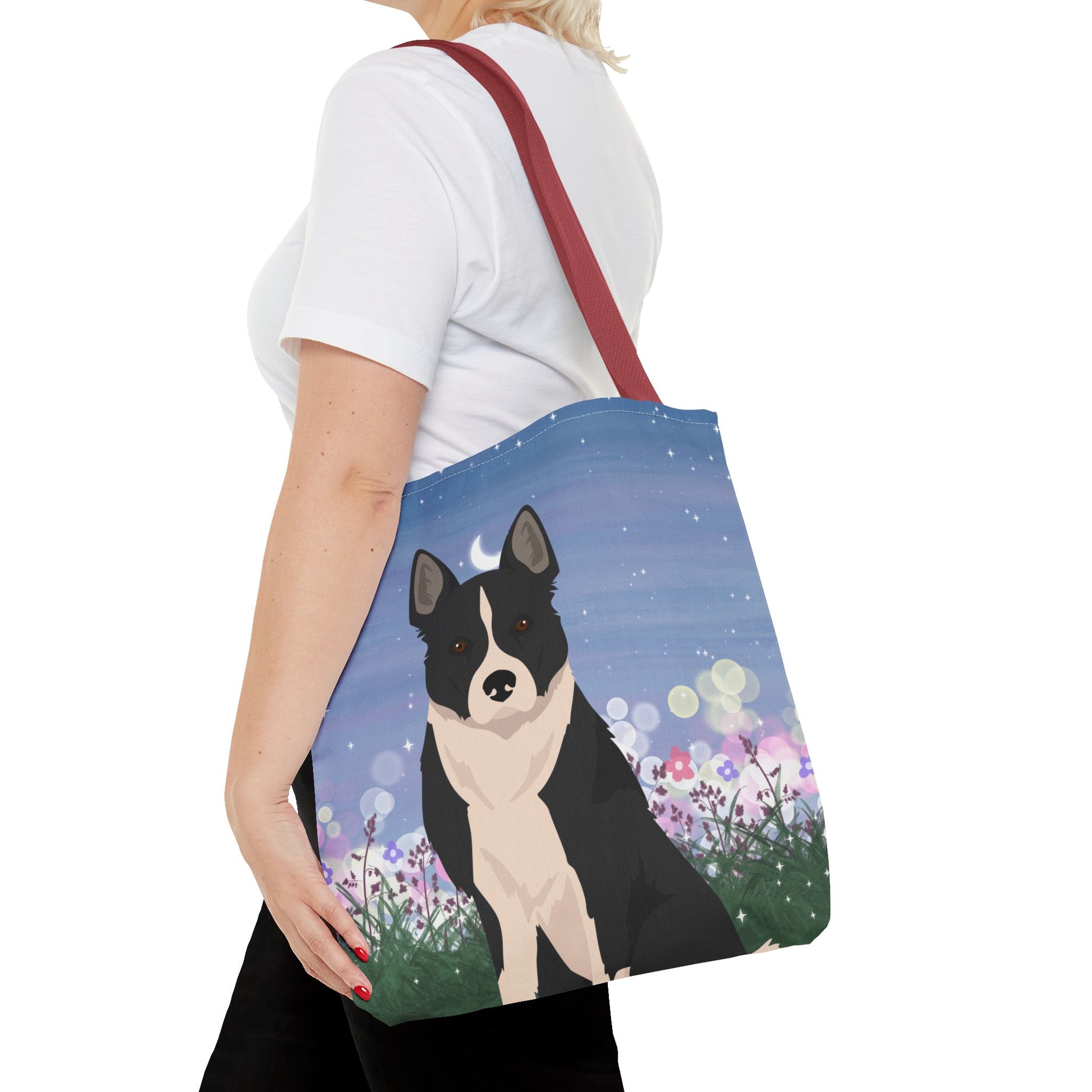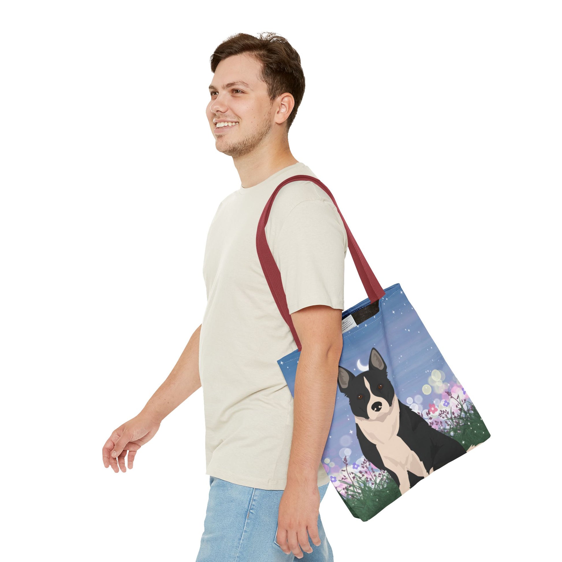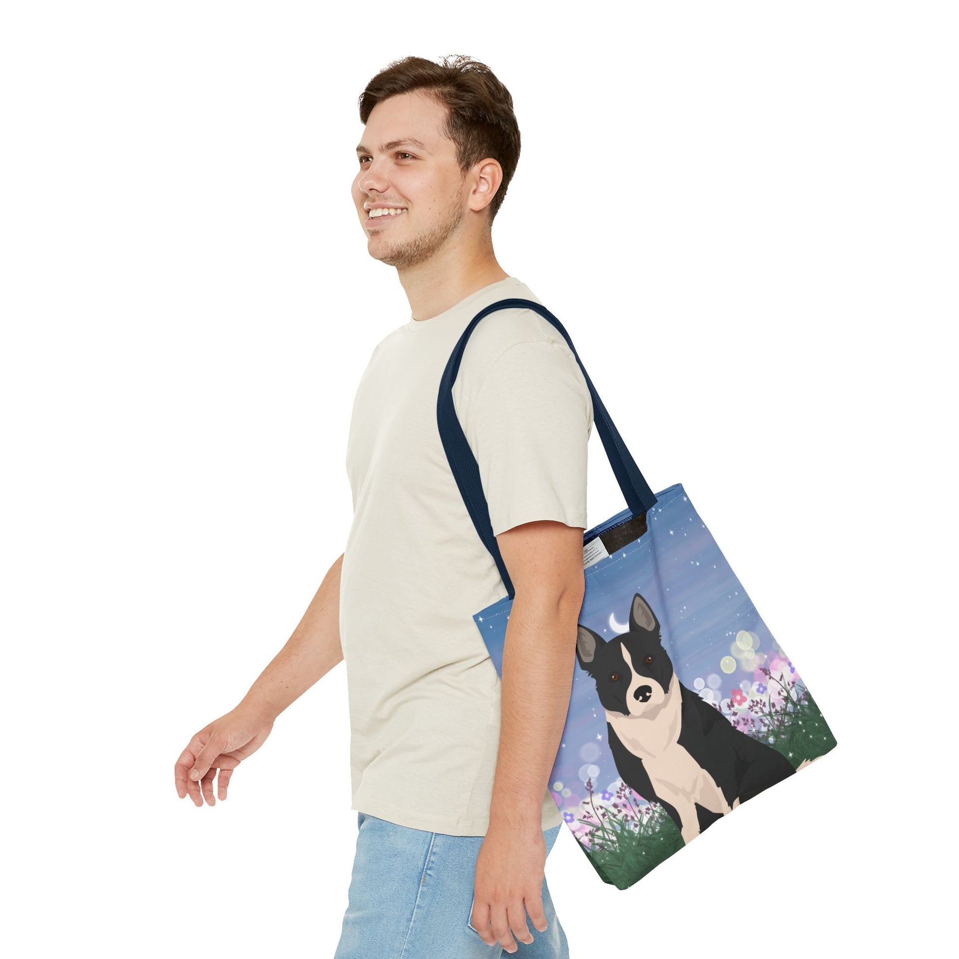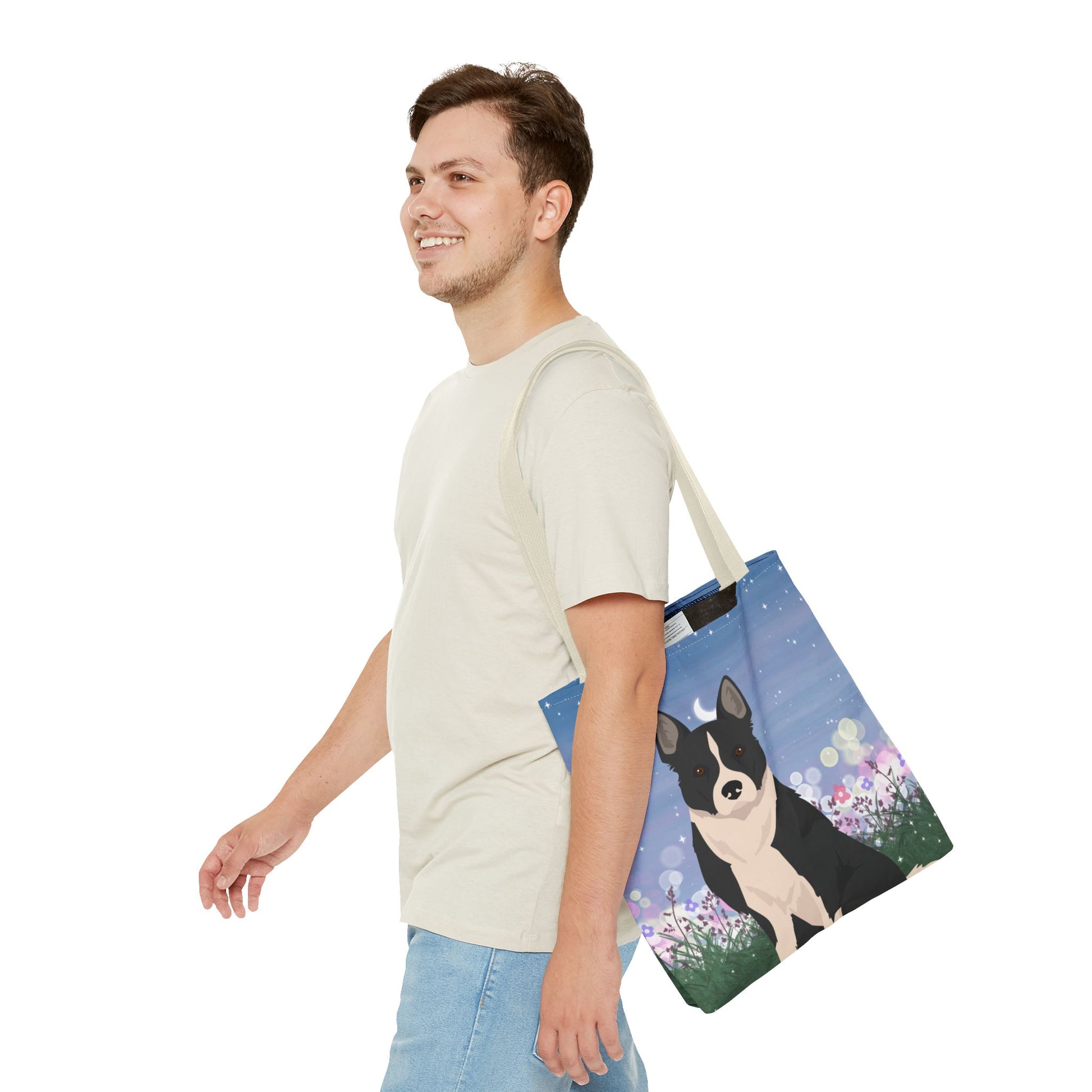 The durable polyester body and reinforced stitching make it ideal for everyday use. The boxed corners provide extra room for storage these tote bags are versatile and functional. Great for outings, shopping trips, or as a gift for Dog lovers.