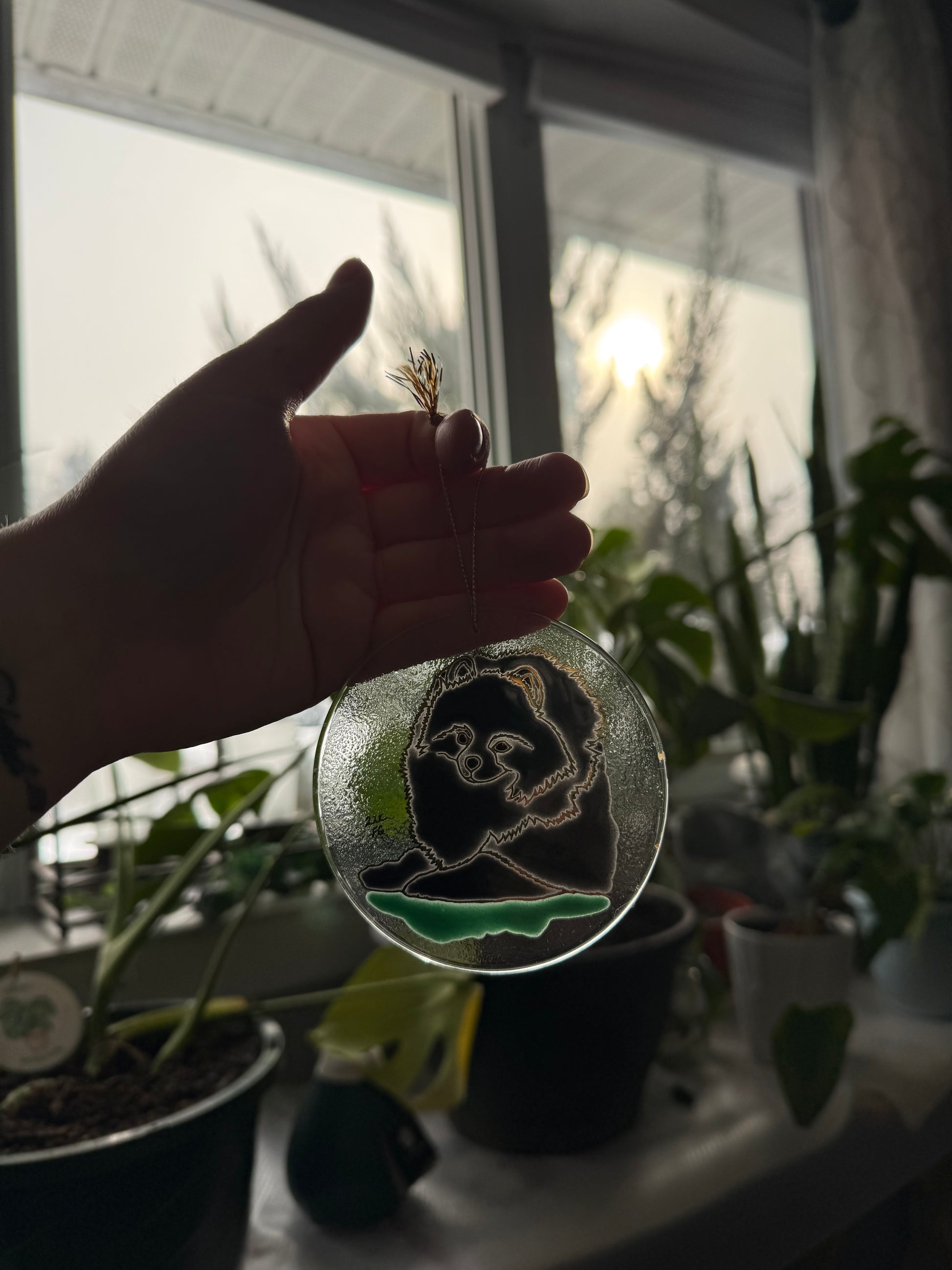 Pomeranian Dog Ornament Hand Painted with 22k Gold
