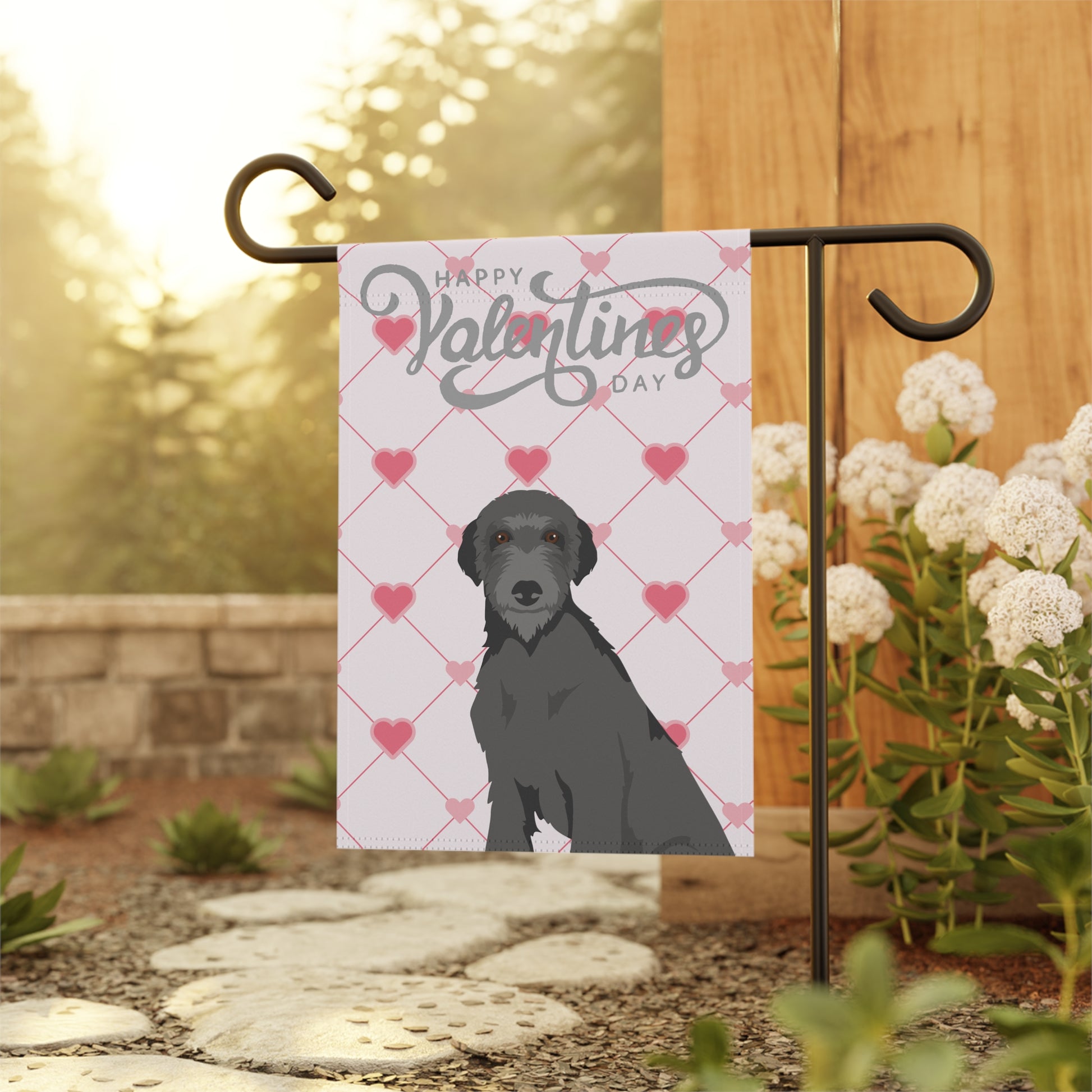 Scottish Deerhound Dog Valentines Day Garden Flag